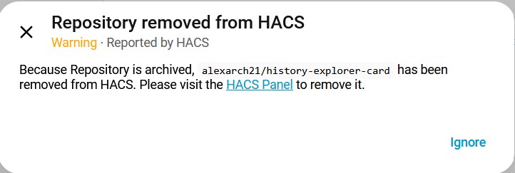 That thought crossed my mind - but whatever the issues, although HACS only lists @alexarch21’s history-explorer-card available for download from the HA HACS interface: