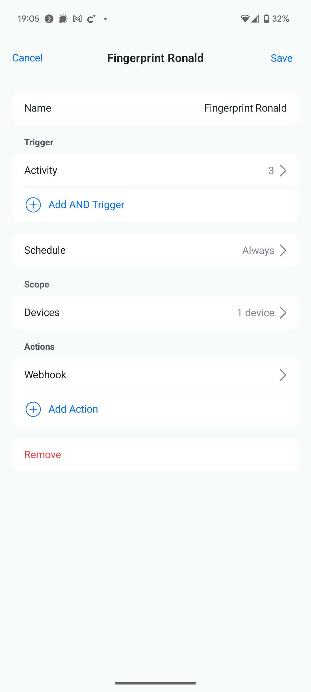 I created an alarm rule in Unifi Protect, this alarm is triggered when a known face has been reconized. When it does it should trigger the webhook automation in Homeassistant.