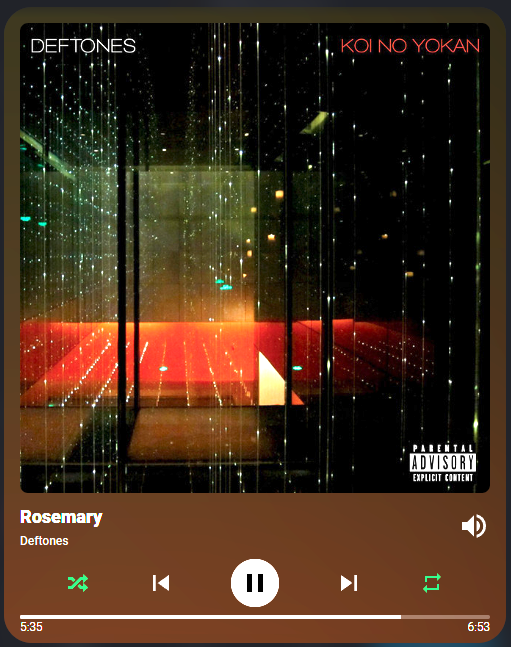 Not an update post, but I was influenced by a Reddit post and recreated the Spotify music controls using this card. The config is in the README. It’s all done using built in style options and templates. It even has a hidden volume slider that uses the exec action to change the values of CSS styles to hide/show it.