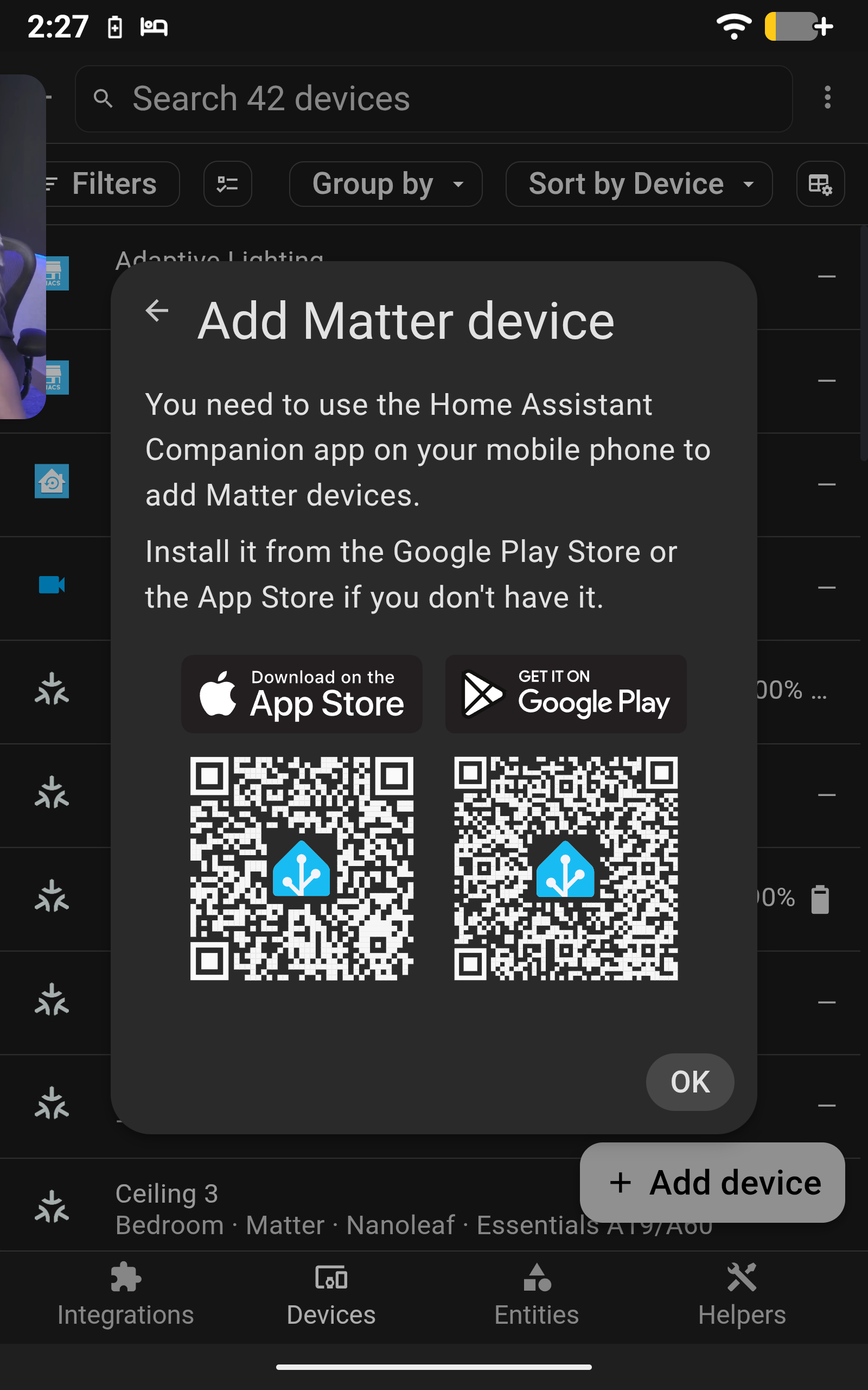 Good news - you can add matter devices on the web UI through a deeply hidden menu and the next update is making that more user facing so this issue will be resolved