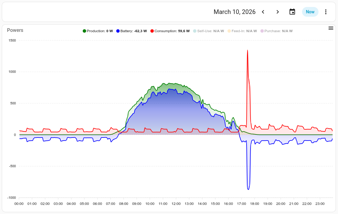 The core of this solution is its functionality, not its looks, but just as an example I want to share the main graph of my Overview dashboard which is controlled by the energy-date-selection card on top of it: