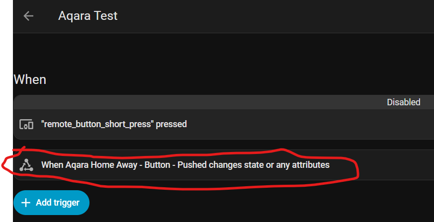 I have an Aqara mini switch and when I use it’s entity as a trigger as shown circled in red below, it causes Home Assistant to reboot. This has occurred to me several times. One time I had a TTS message as part of the action, and it just kept looping. I restarted HA to stop it.