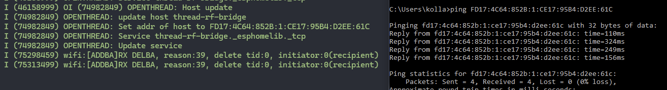 - go to Releases · espressif/esp-thread-br · GitHub and get the latest release. It’s a little bit involved, you do have to compile stuff and so on, but you don’t really need to understand any of it and just follow the linked documentation from the release page. In short you need to build esp.idf and use the thread border router example from a second repo (it’s called examples, but it’s actually what you wanna use). This docs also helped a bit. The USB-C port to use is the one labeled “USB2” (but seems that both work?). It takes quite some time to clone and build everything (and is a bit confusing that you build stuff for esp32 h2 first, but do not flash it, it gets flashed afterwards when you are flashing the main part: ESP32-C3.) You don’t need to really setup thread details via that menuconfig, that can be done later (if I understand correctly). This guide shows that the last command is