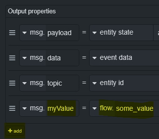 If you are using a home assistant node for the trigger, like an event state or trigger node, at the bottom, output properties. Add a new output and set it to the flow variable.