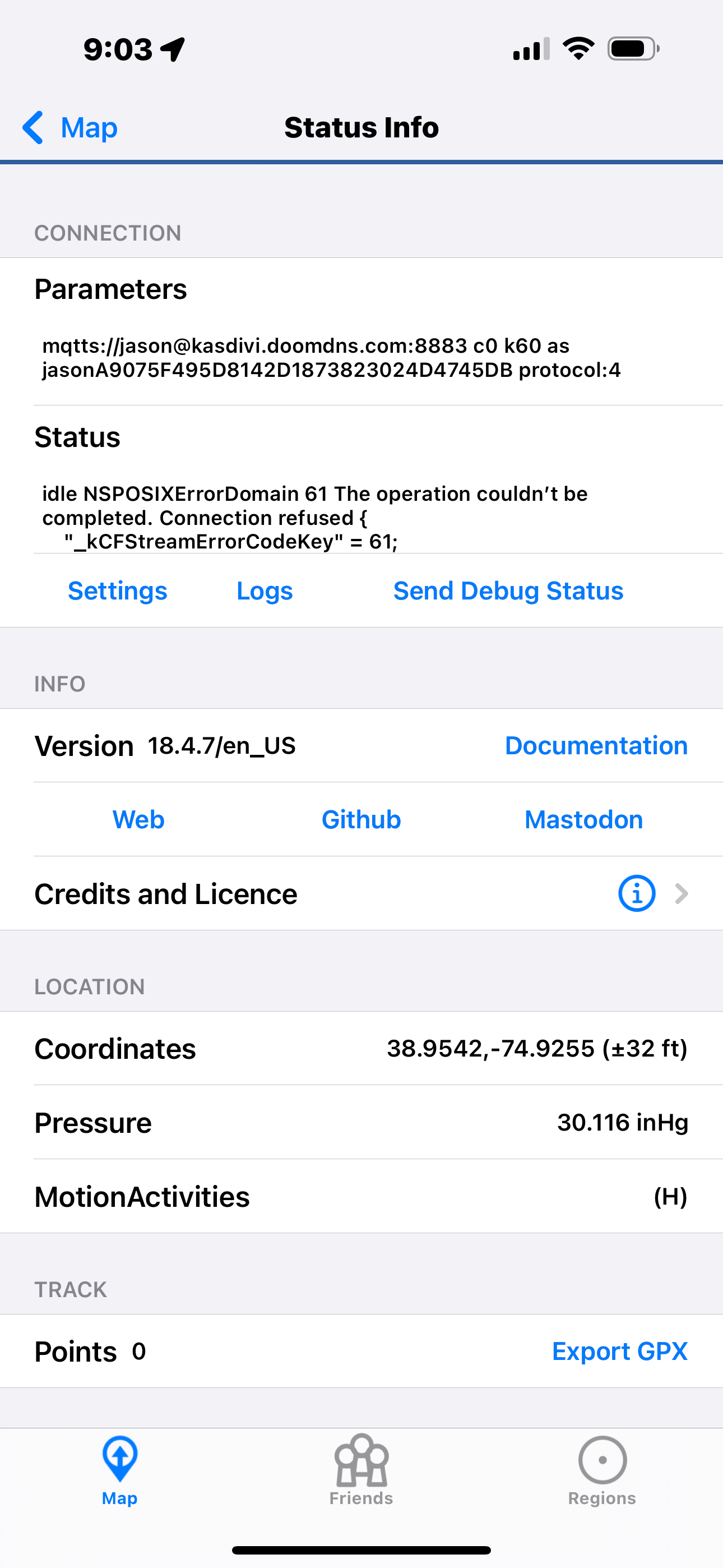 I took “solution” away. HA on my Linux virtual machine appears to be communicating with HiveMQTT (my MQTT Broker) . but nothings shows in HA. . no regions, no, POI no way point The broker reports receiving. and alll the above shows on the iPhone HA