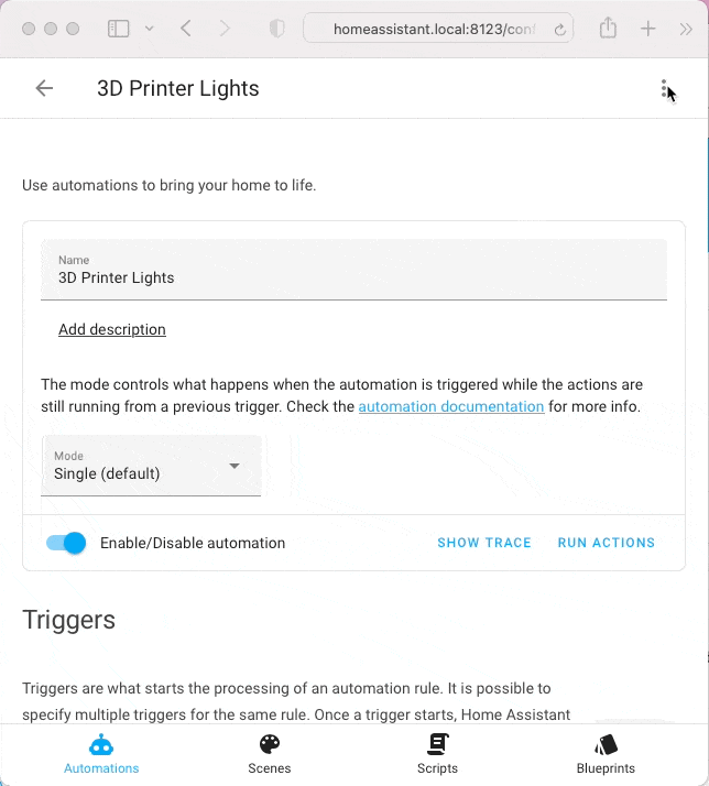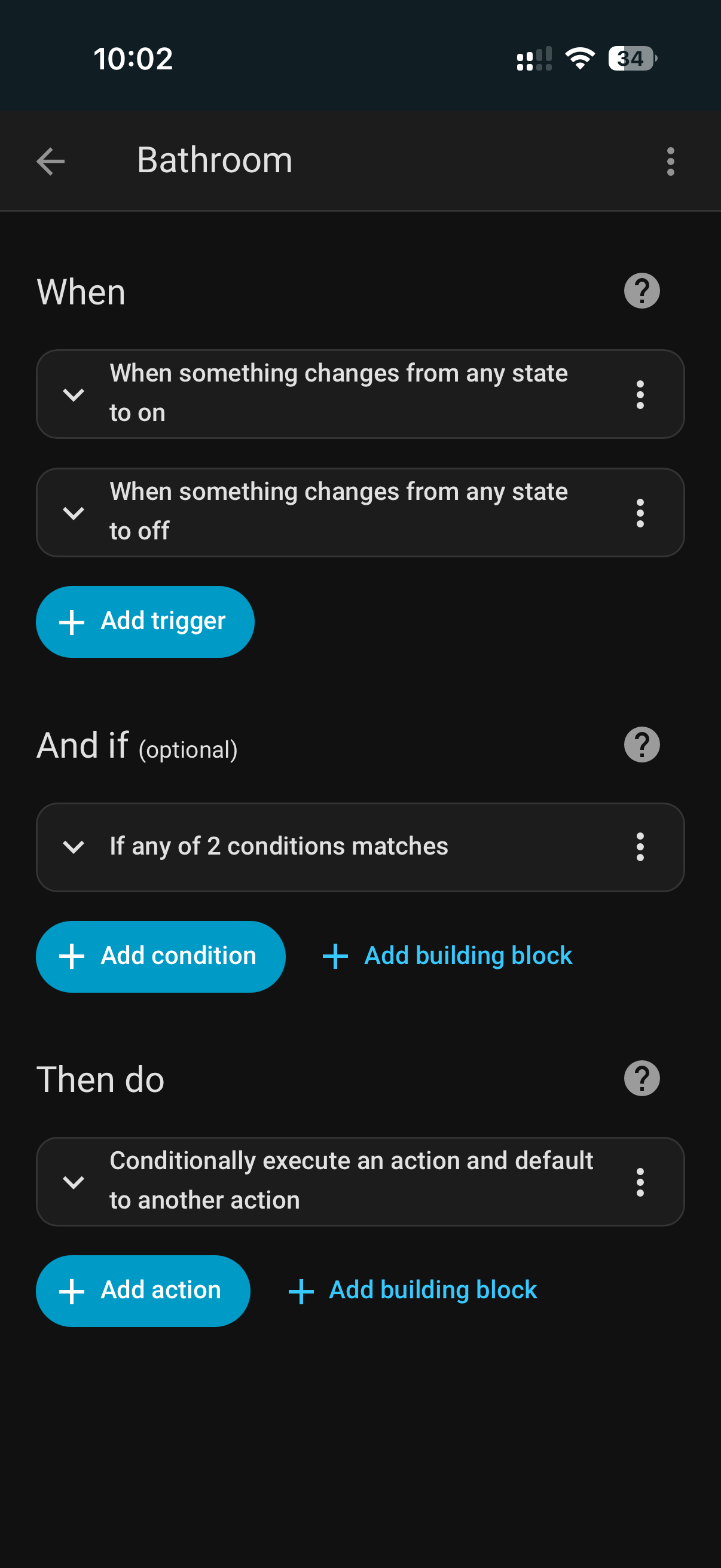 Ok so I added 5 minutes to the “off” section. Does this mean lights stay off for 5 minutes cause when you look at the Visual side and not the YAML that what it looks like it doing. Please help I been at this for weeks now. Tonight I also made a new bathroom and when walking pass or waiving hands at the sensor it goes on and off but I am not sure how long it last cause when I leave the room I can’t see that bathroom from my office/living room.