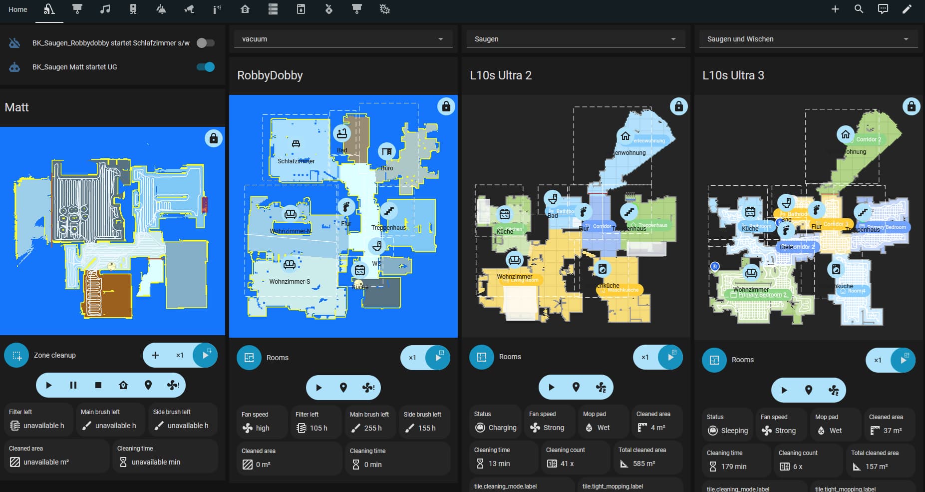 indeed, the first two (mat and robbydobby) are a roborock s5(0) with valetudo, and a L10s Ultra with valetudo. the #2 and #3 need declouding badly. currently only active in my basement… got em broken for cheap and fixed em up. Waiting for my break out pcb to get rid of the cloude.