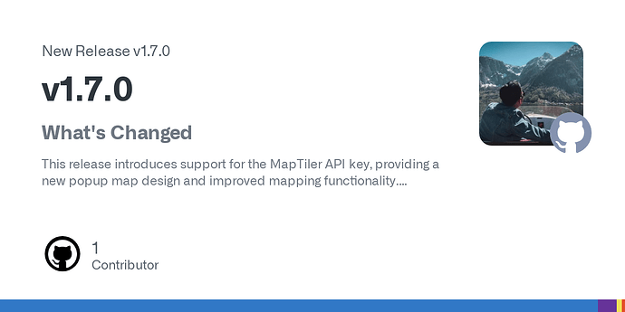 This release introduces support for the MapTiler API key, providing a new popup map design and improved mapping functionality.