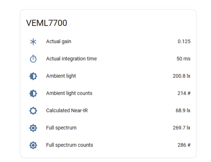 - full_spectrum (Optional): Illuminance for the full spectrum sensor (WHITE channel), lx.