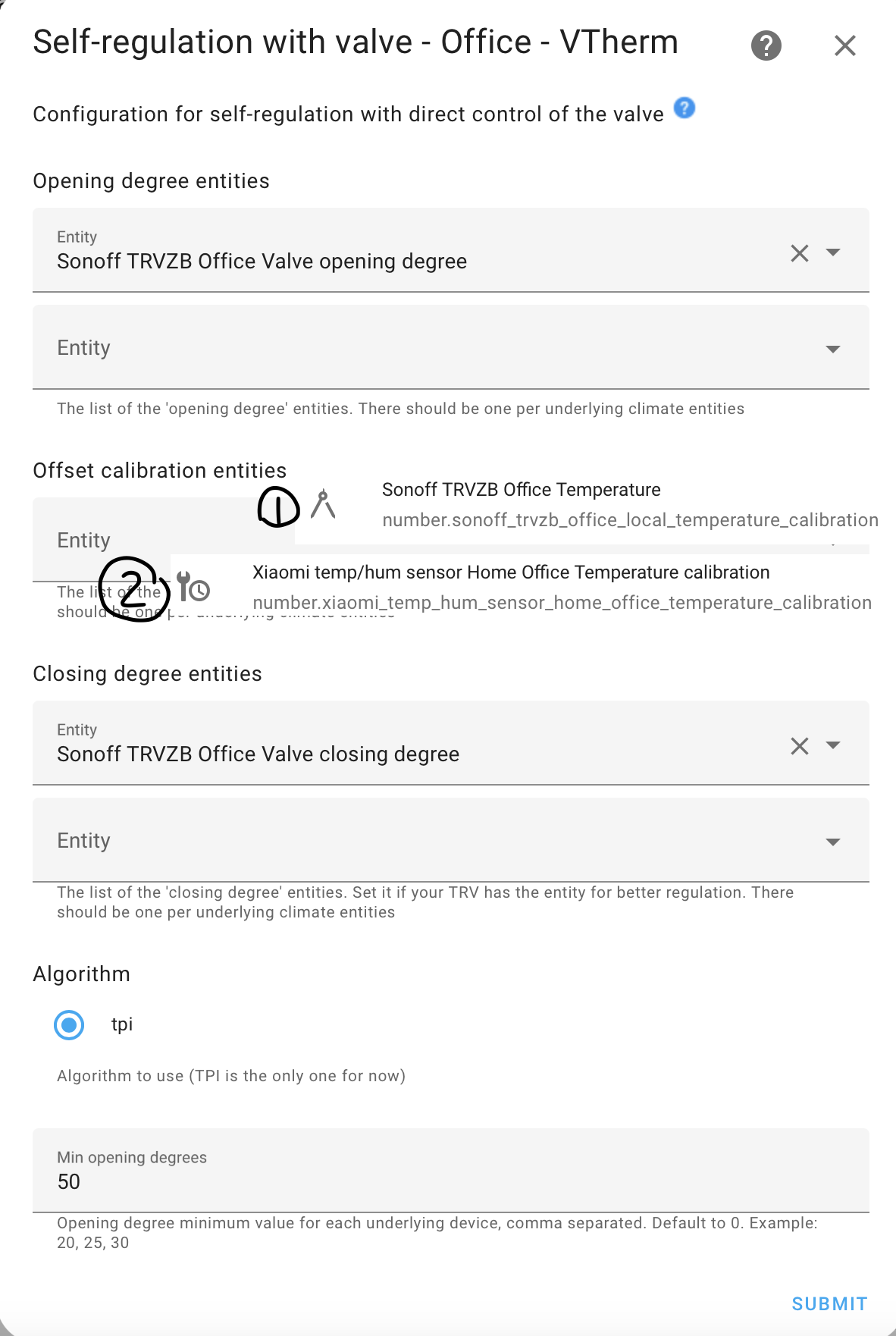 But still - what is “valve closing degree” and “valve opening degree” on sonoff’s settings? By default they are both set to 100.