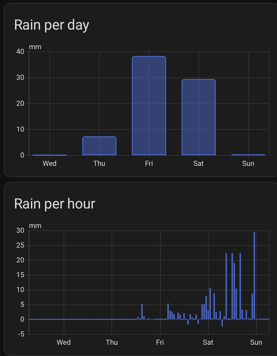 The Y-Axis of “Rain per hour” is the same is for “Rain per Day” . This cannot be correct.