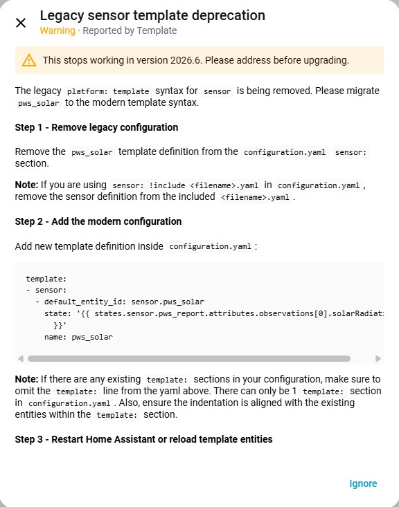 after a reload, the errors went away but I have no data coming into HA from my PWS and getting invalid config message. Any insight is greatly appreciated.
