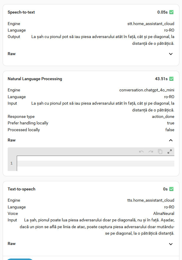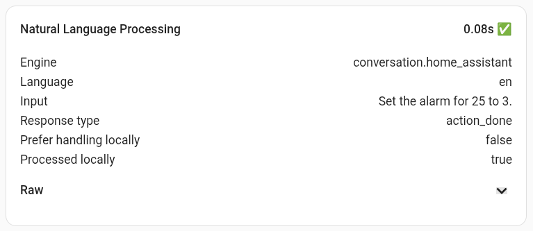 But this only represents time taken by Assist to process the text provided by speech-to-text and interpret its meaning. It doesn’t include the time taken by STT itself or by any TTS response. It is not available programmatically, so its use as a debug tool is limited.