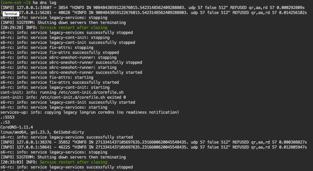 When I plugged it back in, HA ran a several updates before declaring it up to date. I then checked it out and it seemed to run okay using home assistant cloud. I have an openai account and was able to setup openai conversation as my conversation agent. This also seemed to work okay but with some latency. I decided to reinstall the Whisper integration and see if that had better latency. Unfortunately, whisper asks for an IP and port to connect to and when I enter my HA IP and 10700 I just get failed to connect. When I look in the HA dns log I find the following entry.