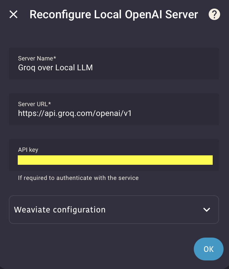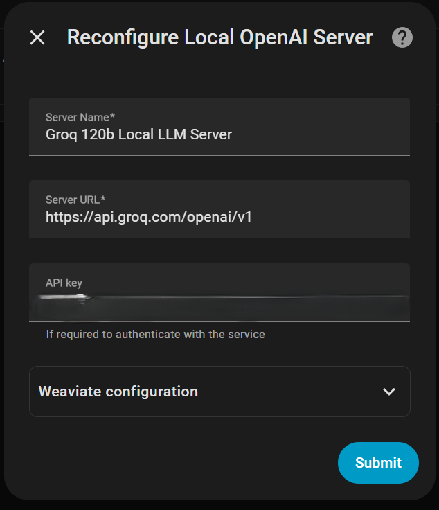 Easy to setup, as the configuration of this LLM integration is based on the official HA OpenAI integration, just with a few additional fields.