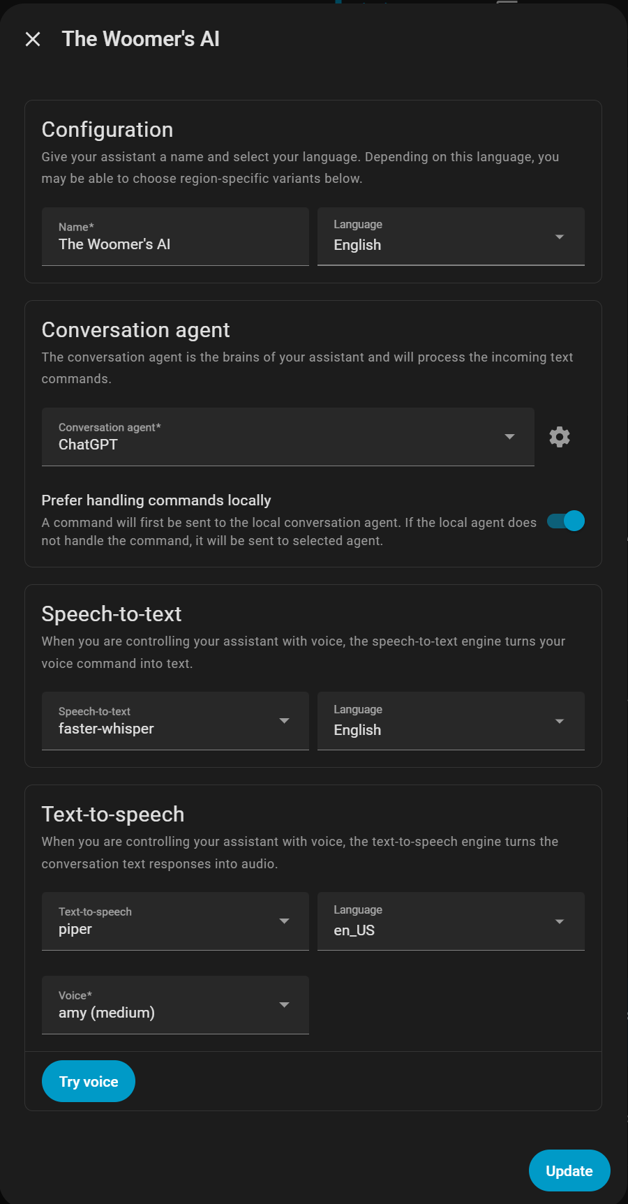 If I’m reading that right. You’re using faster-whisper and Piper both locally for sst and TTS. The. You’re using Gpt4.1 mini. Your prompt. We’ll it needs work but that won’t have anything to do with speed.
