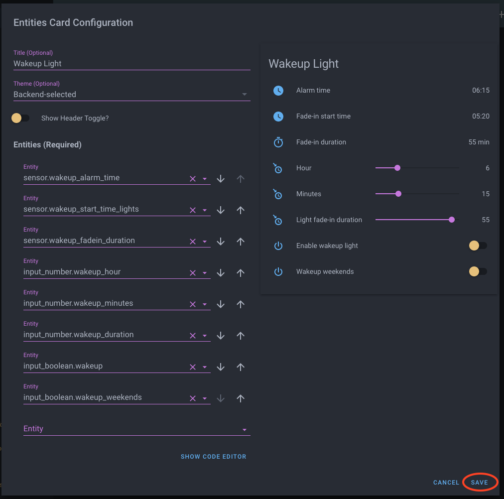 Well in that case it’s not working. I’m not working off a ui-lovelace.yaml file right now (was getting a blank overview frequently). If working from the UI how would I build the Wake Up Alarm Panel?