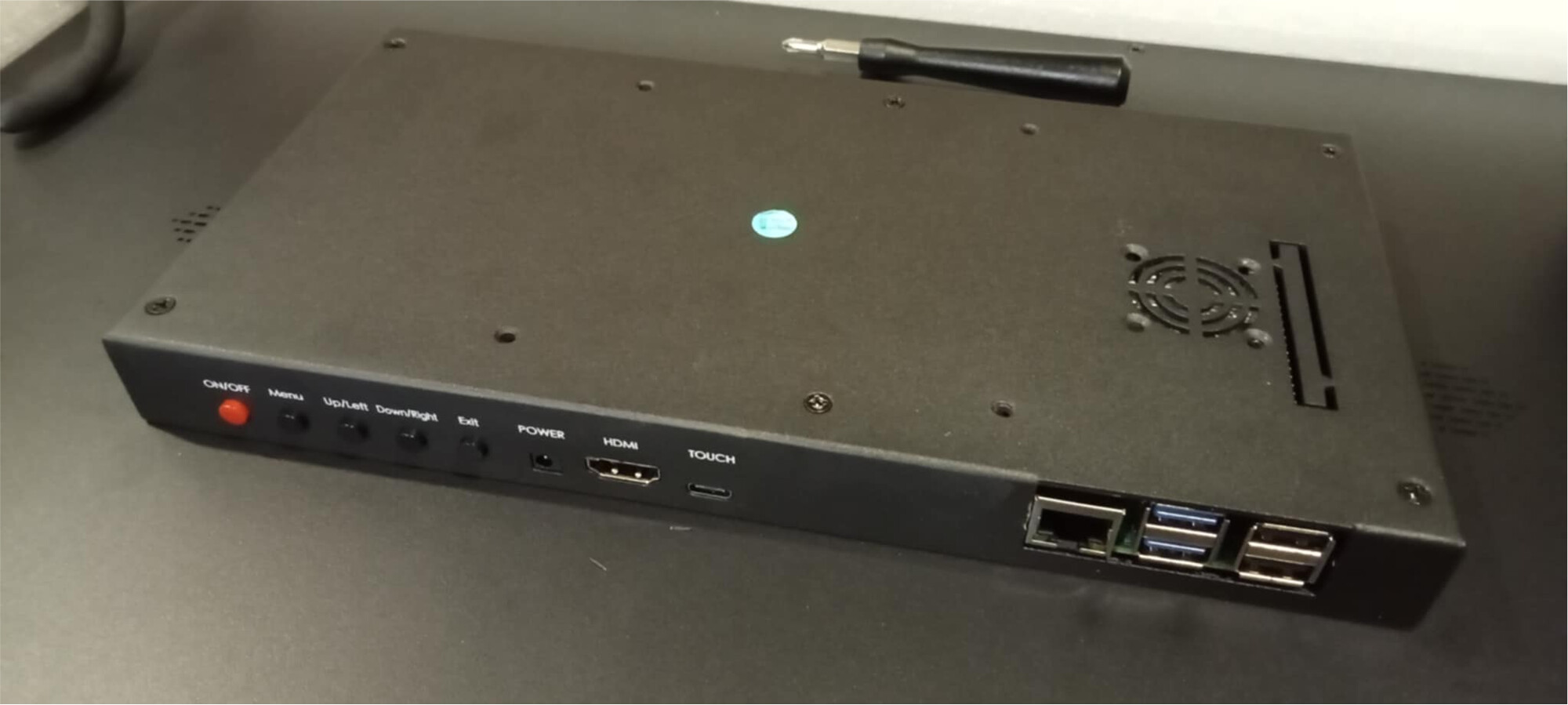 - Touch USB-C and HDMI connected to the monitor, Pi500 mounted remotely.