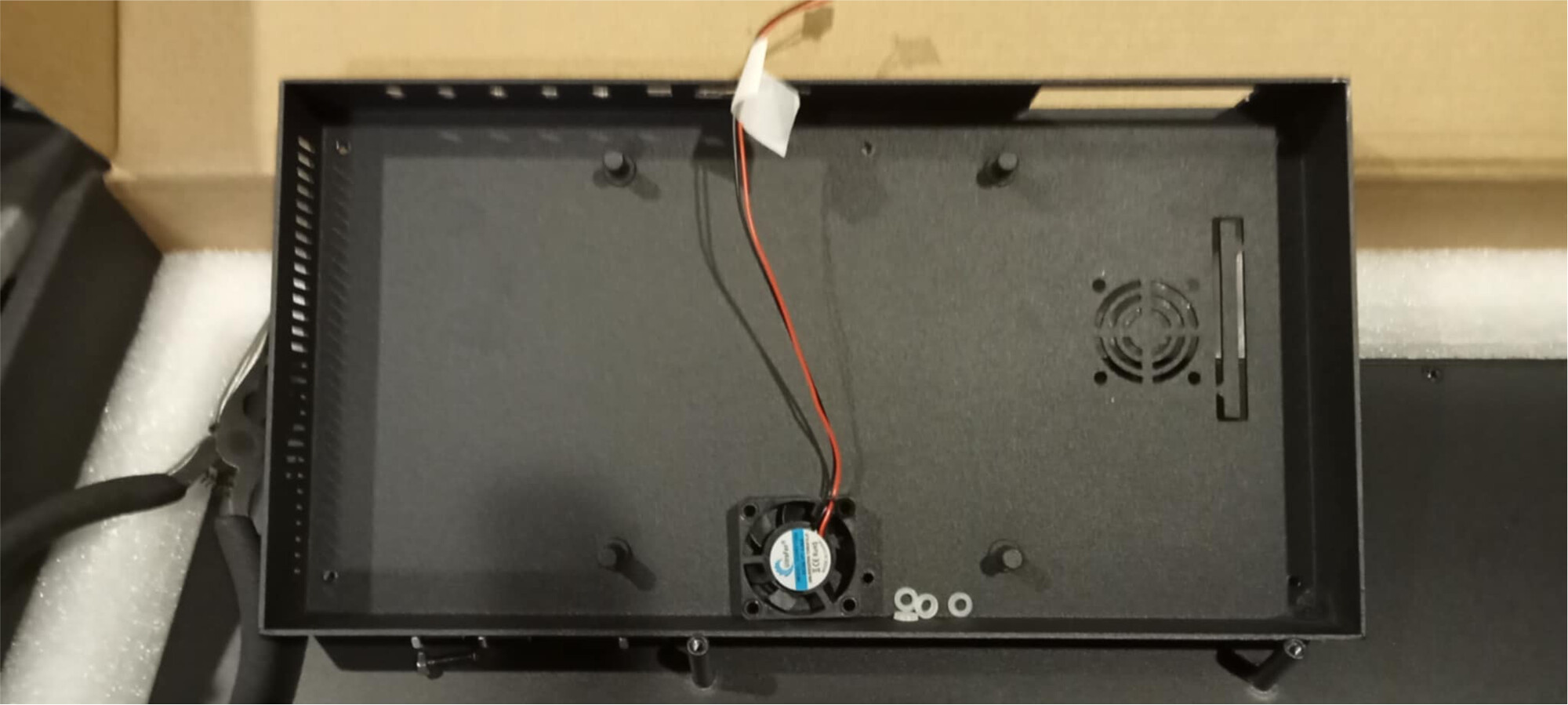 - It comes with screws, spacers and internal fan.