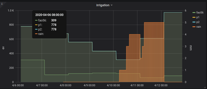 OpenWeatherMap based on your accurate location could provide this information. In some cases (if you are located close to a weather station) it is surprisingly accurate. Again, this is not a forecast it is actual rain in mm. The code accumulates the total mm and covert it to ev units using a simple factor. I’m using a factor of 100. Let’s take an example: