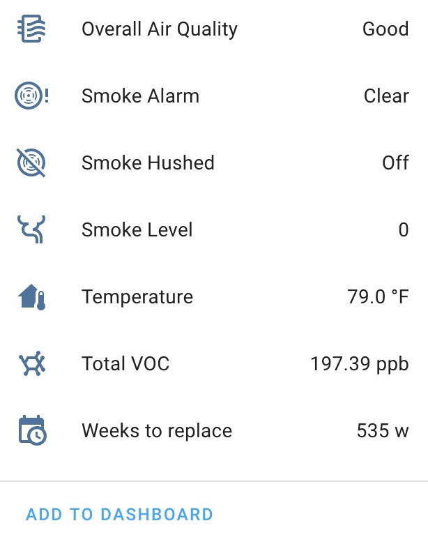 As Paul Haddon wrote above, it only provides some basic info. Through ZHA I see these entities: Smoke (yes/no) and temperature (not very useful as it seems to be rounded to the nearest degree and Iām doubtful about its accuracy). I also see the battery percentage.