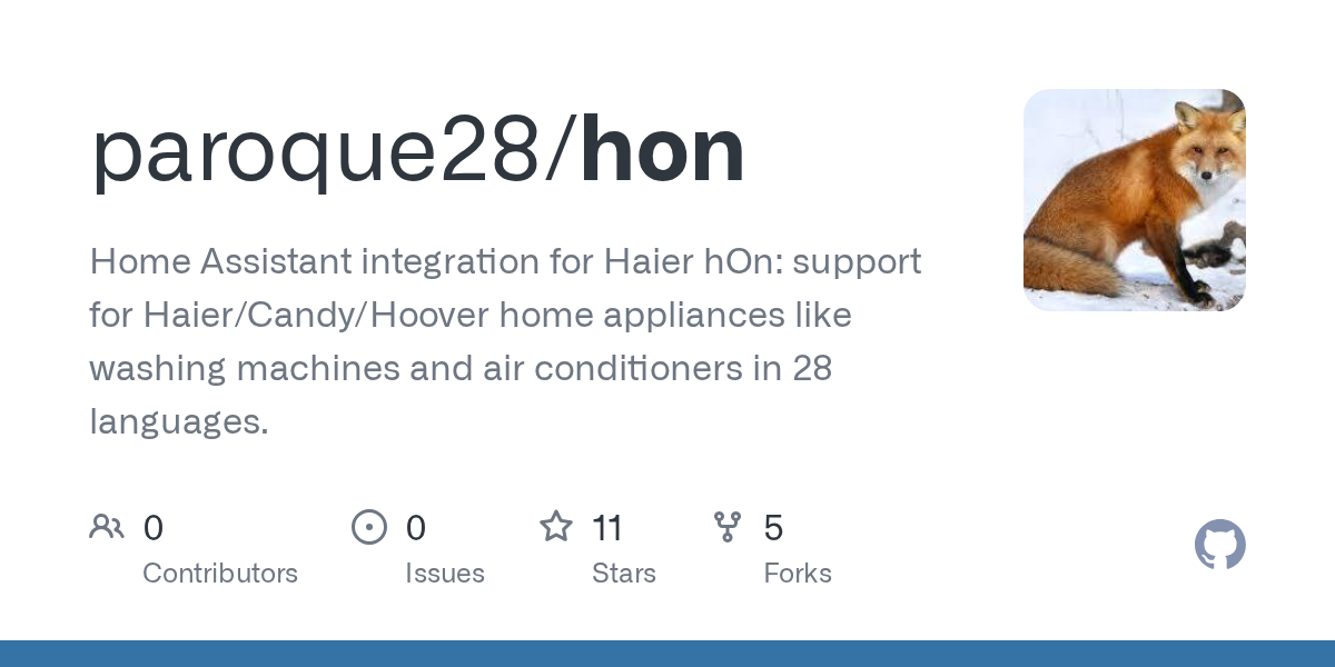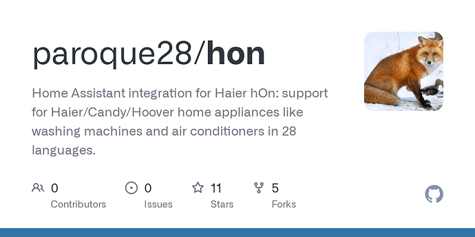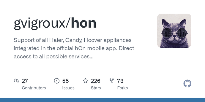 Home Assistant integration for Haier hOn: support for Haier/Candy/Hoover home appliances like washing machines and air conditioners in 28 languages.