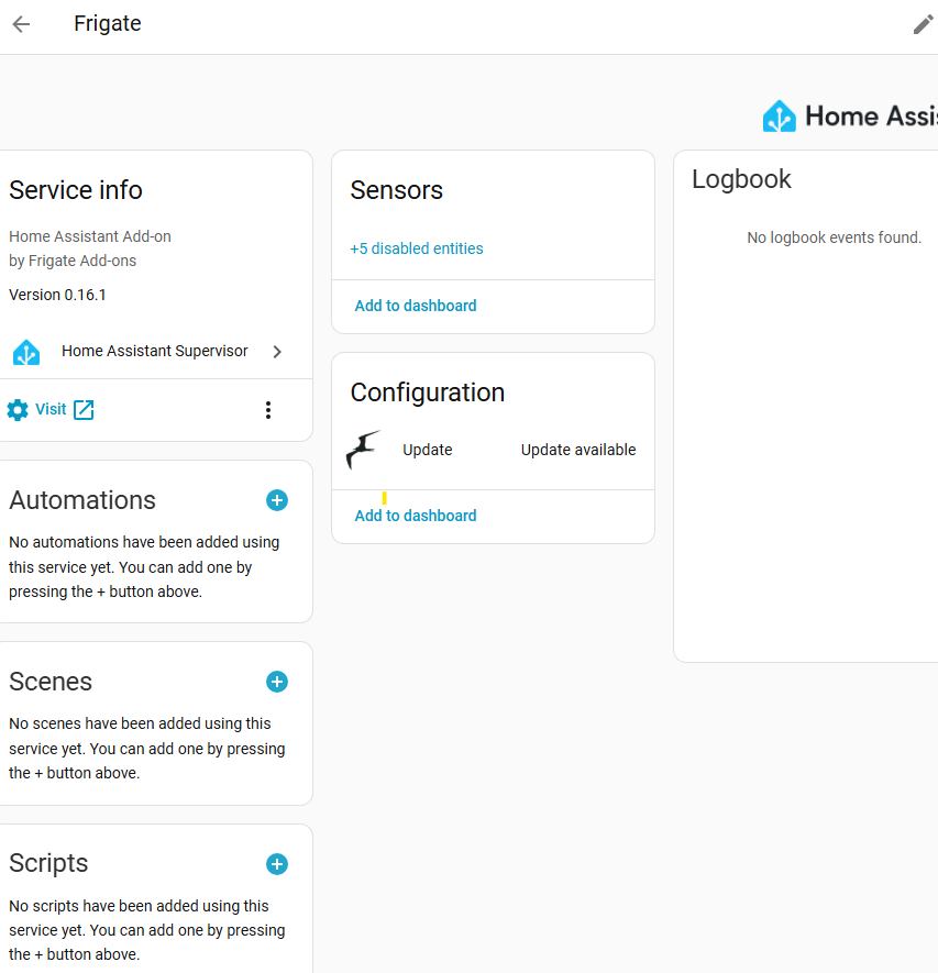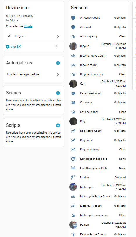 I think I must have Frigate installed in a weird way. When I go to the “System>Devices” tab I see two entries for Frigate. Neither have anything like the info you show. Here is the first entry: