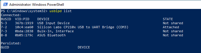 However, I could see the device in Powershell via usbipd list