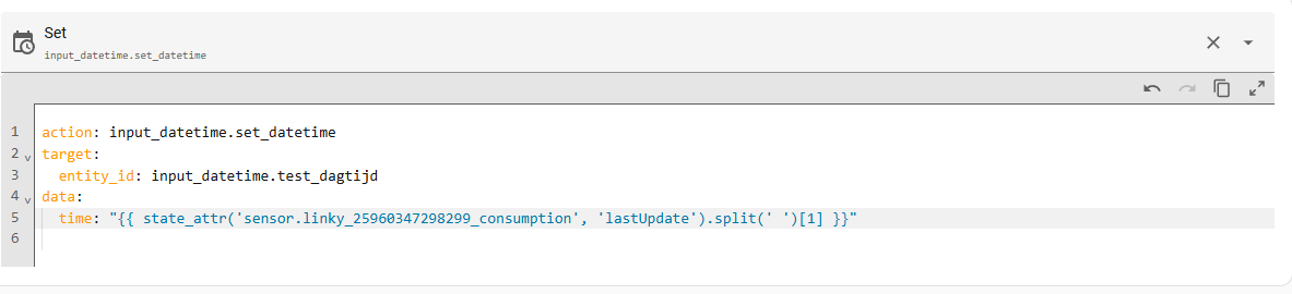 I want to write this time to a time helper “input_datetime.heizstart1,” but unfortunately, I can’t get it to work.