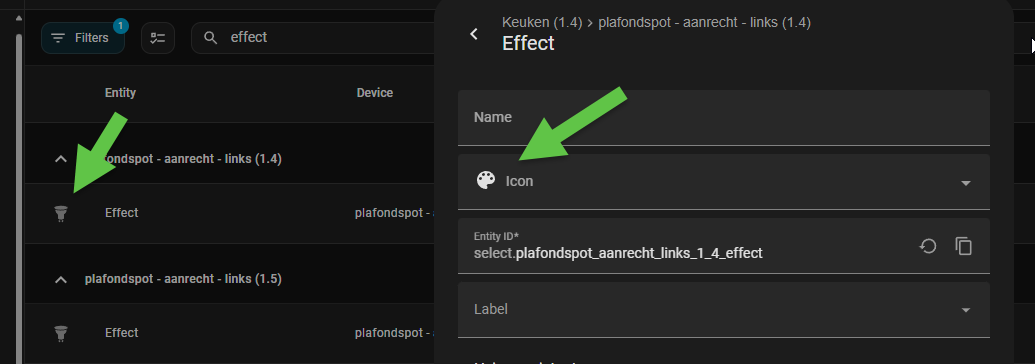 I have something strange. When i look at my entities (settings → devices & services → entities), filter on “effect” it shows the entity with a light bulb