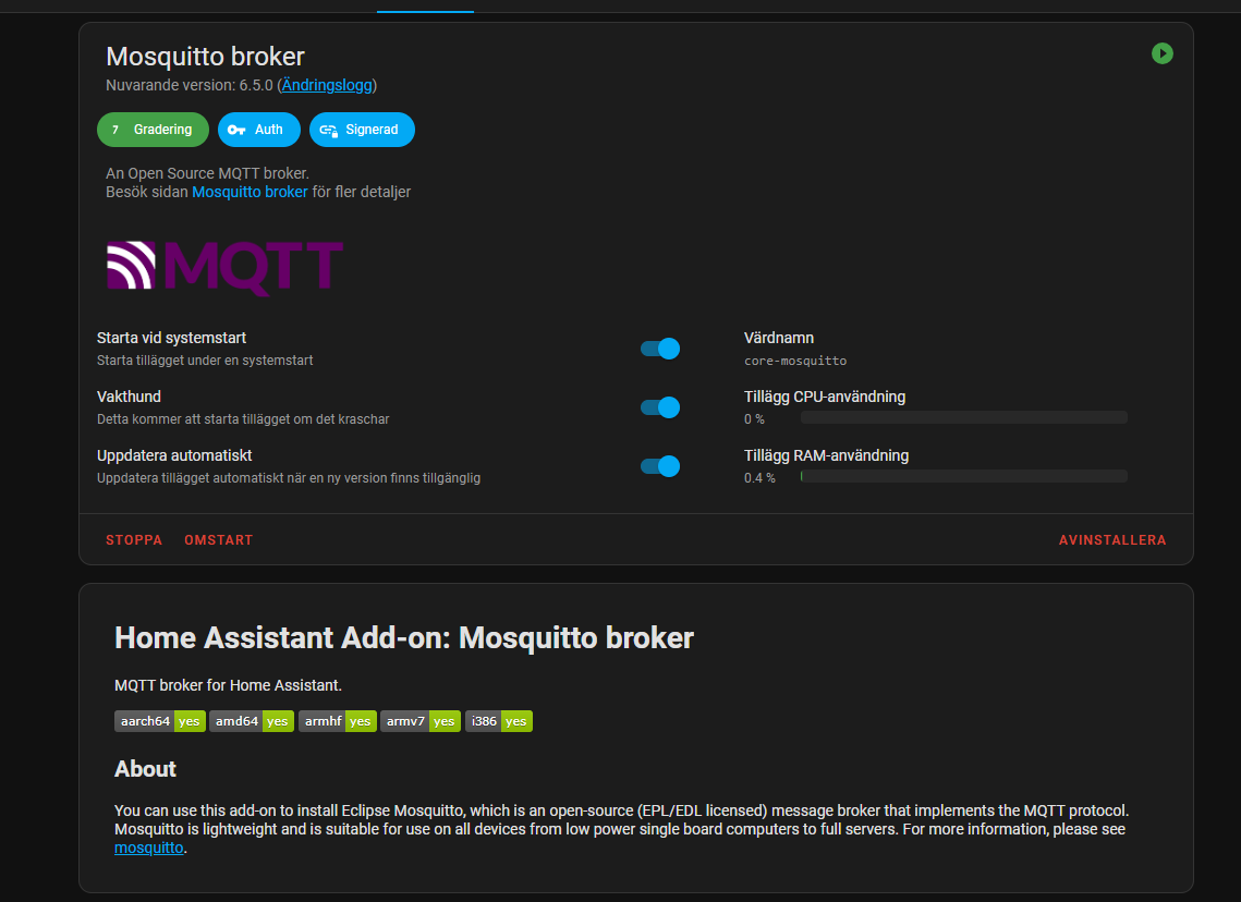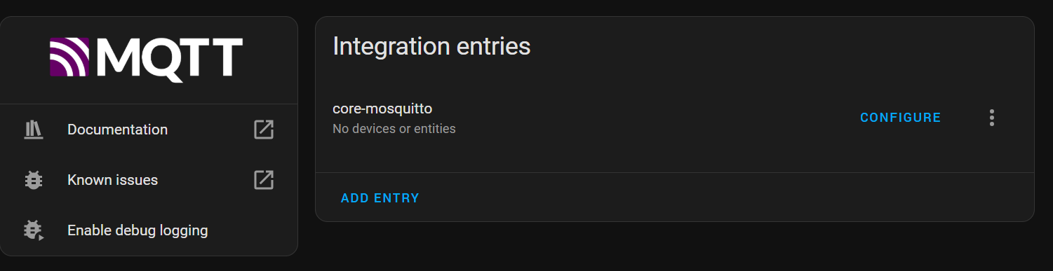 After that I’ve installed the MQTT - Home Assistant Integration and set it up as ‘Use the official Mosquitto Mqtt Broker add-on.’