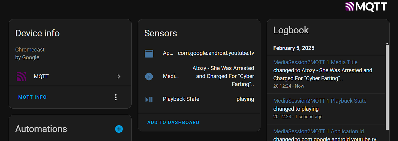 I already had MQTT running - I have two Ulanzi displays, two Tasmota lightbulbs and several different sensors on there. On iphone there’s an app called MQTT explorer and if you point it at your mosquitto broker you’ll be able to see MQTT traffic. I think there’s an MQTT explorer for most platforms, and you can test that your mosquitto broker is functioning as it should be and confirm that part is working.