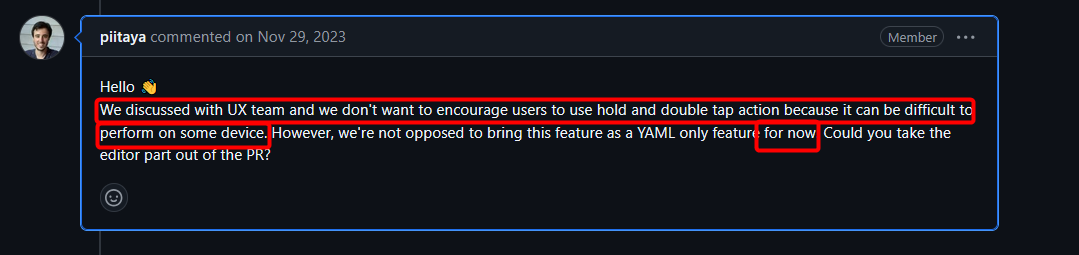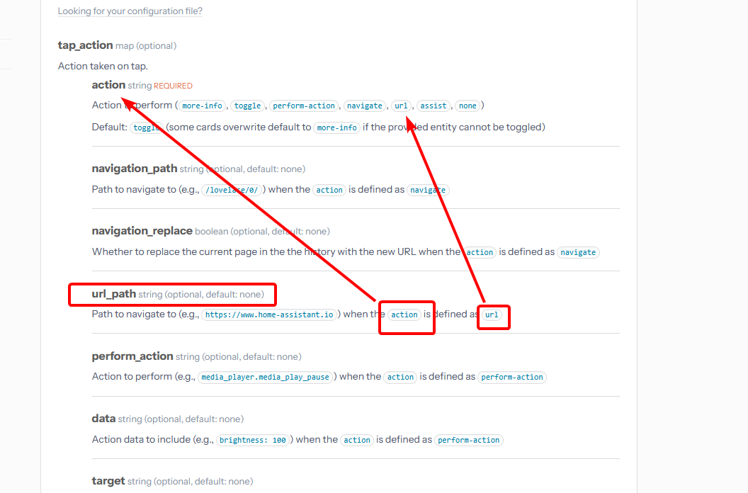 You’re confusing the REST API with the API of HA’s YAML. I’m talking about the acceptable YAML code - for instance, what tap_action: takes as a variable is shown in the page here [1] but there’s no detail as to what’s actually acceptable for any of the options it takes, such as perform-action or a link to it. So then you have to find out either by trial and error, or by a lot of searching of forum posts. Which is much higher-friction than it should be, IMO.