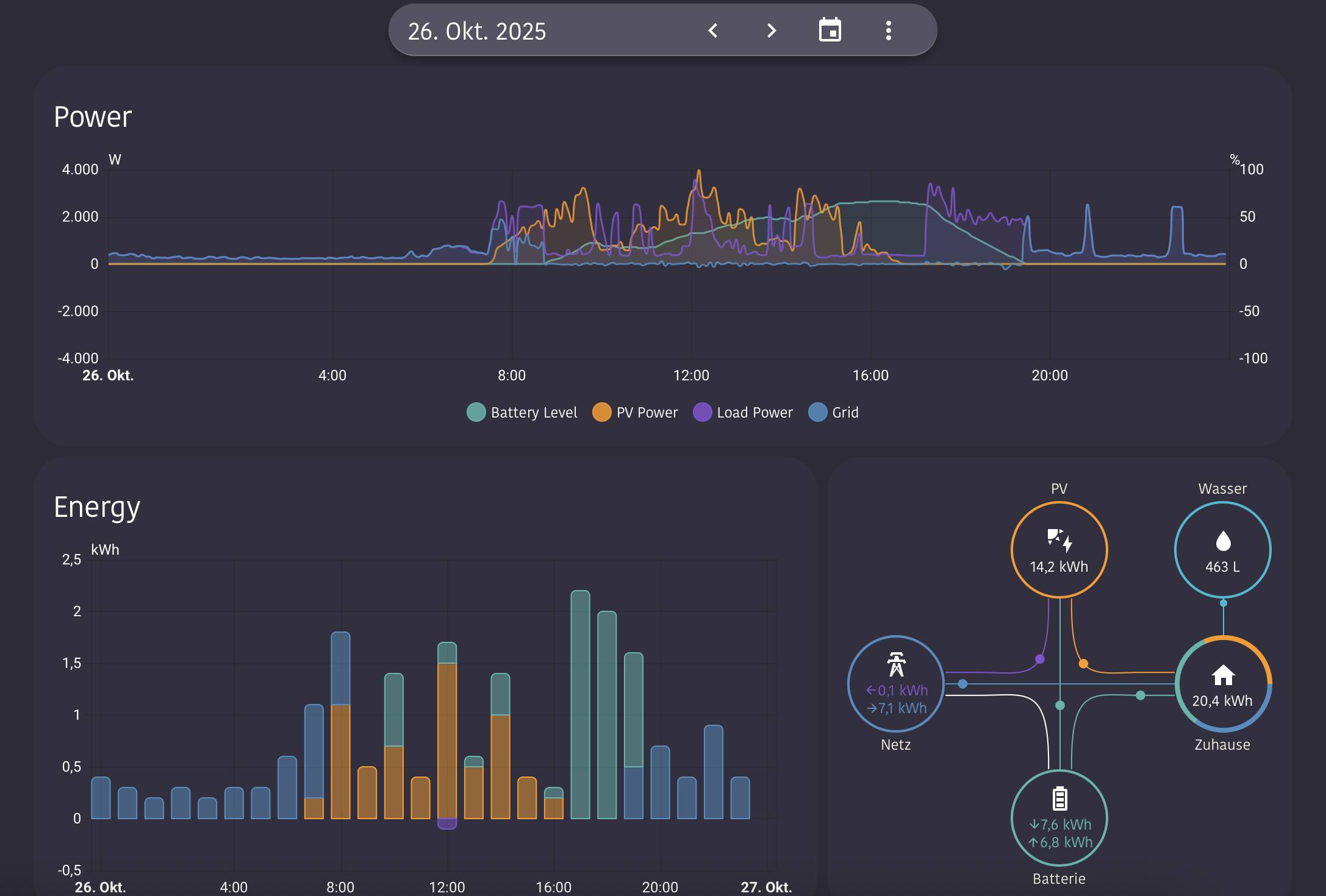 - Overlayed line chart with battery state in % to get a better (and faster) feel what’s currently going on and why export or import started at a given moment.