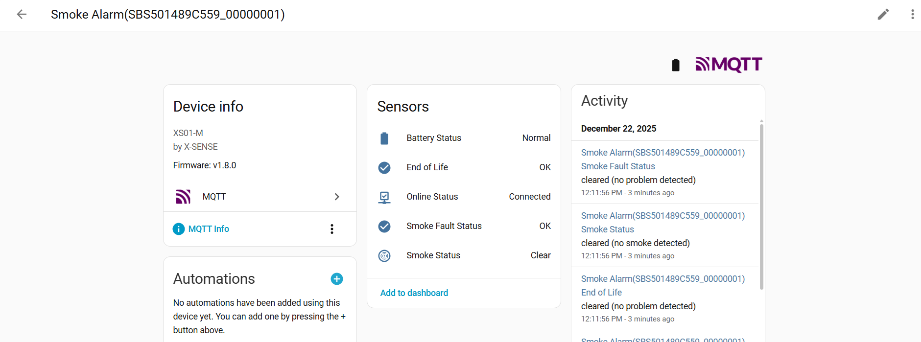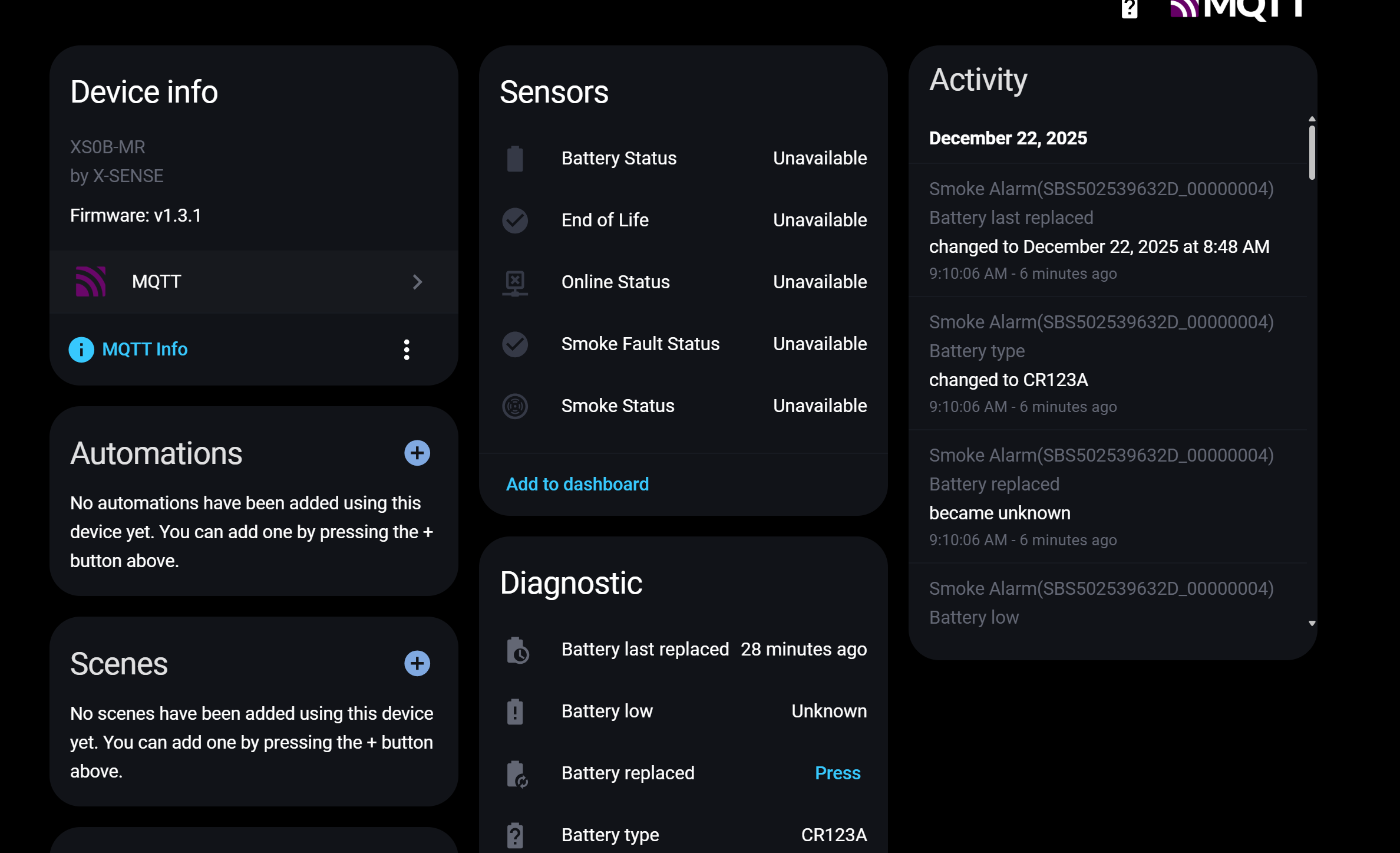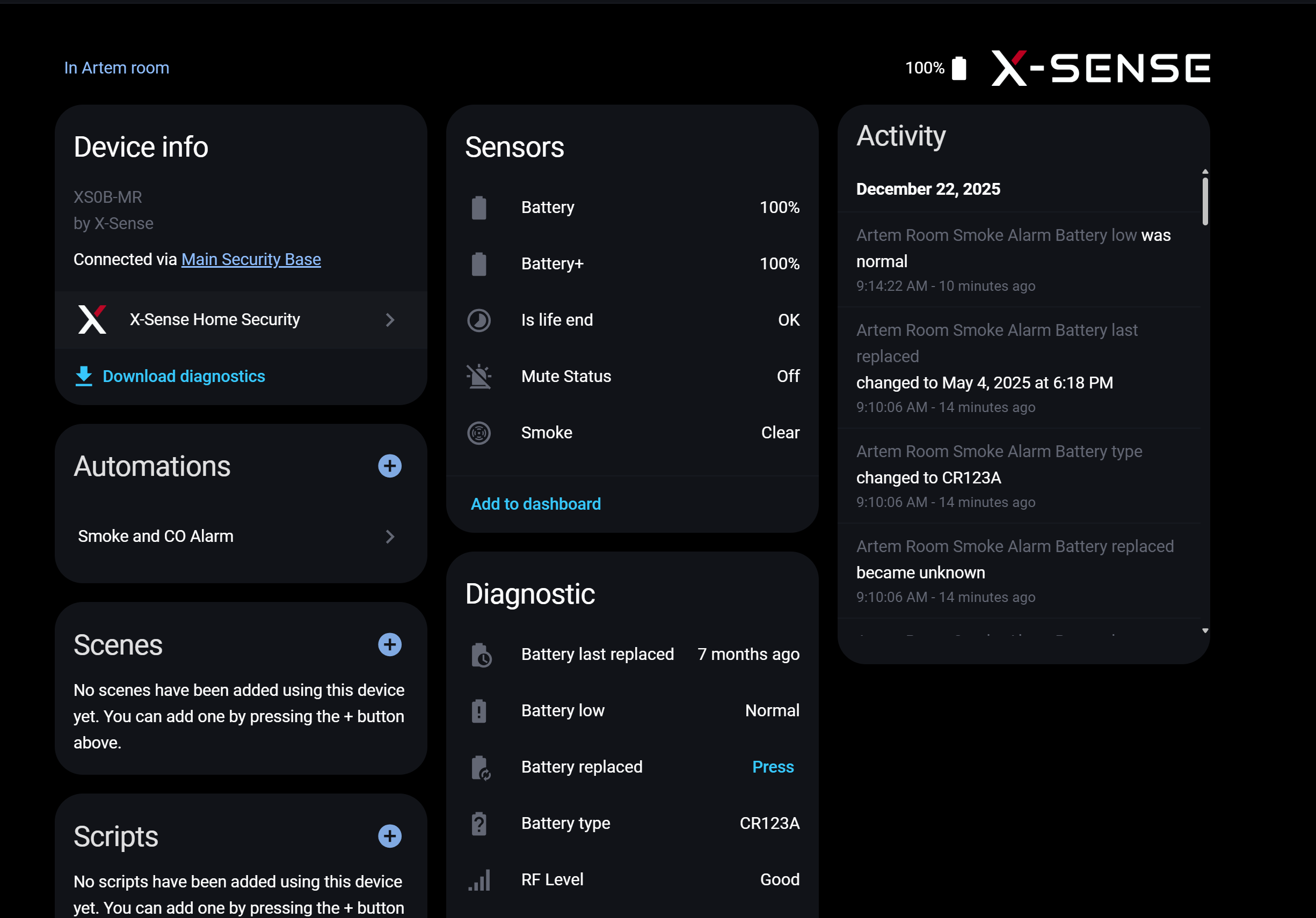 I’ve just joined the x-sense app beta program and configured the Home Assistant integration.