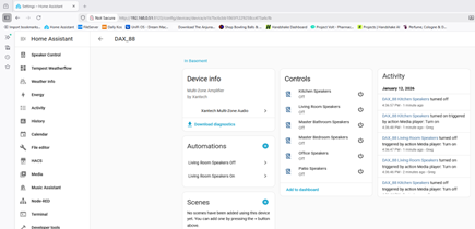 I have everything working on my DAX-88. Volume controls work, on/off works through scripted commands, but the UI doesn’t seem to poll the status of the speakers. They always show that they are off, even though they are on. I can toggle them on and off, and they show as on for a few seconds, then revert to showing that they are not on. My kitchen and living room speakers are physically on in this screenshot