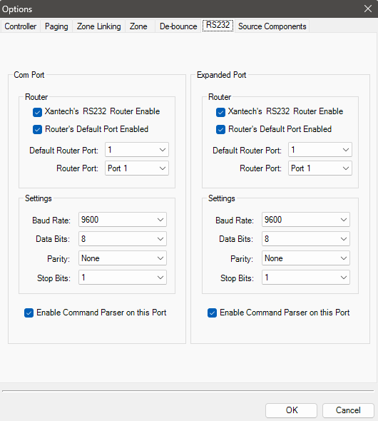 The Dragon Software allows you to configure the COM port on the back of the unit. note there are 2 COM ports on the back. the port you should use is the top-most port. from memory by default the baud rate is 115200. you can confirm this by connecting to it (using PuTTY or similar) and entering in some of the commands to the device such as !1PT+ which will toggle the power on channel one. even if you receive the word ERROR, thats good- because you can read it in English. if youve got the wrong com port settings - you wont be able to connect or it will be scrambled letters. If you want to know more of the commands (unnecessary due to this AWESOME HACS plugin) do a search for MRC88 RS232 “DIGITAL” INTERFACE and you should be able to find the PDF document that lists them all. theyre the same for the MRC88 as the MRAUDIO8x8. cheers Wayne.