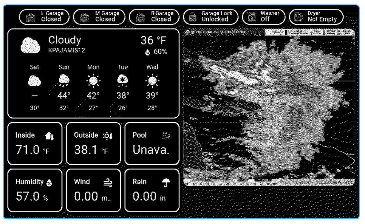 When I first got it I thought I was going to have to build what’s displayed using YAML in ESPHome Builder, but then I read about the Puppet add-on and decided to give that a try instead. Much easier! You just have to create a dashboard in Home Assistant and get it to look right on the 800x480 B&W display. That was the hardest part; getting it to display nicely in B&W. After a bunch of card_mod changes, I got it to look pretty good. I’m still tweaking it, but I’m happy with what I have now.