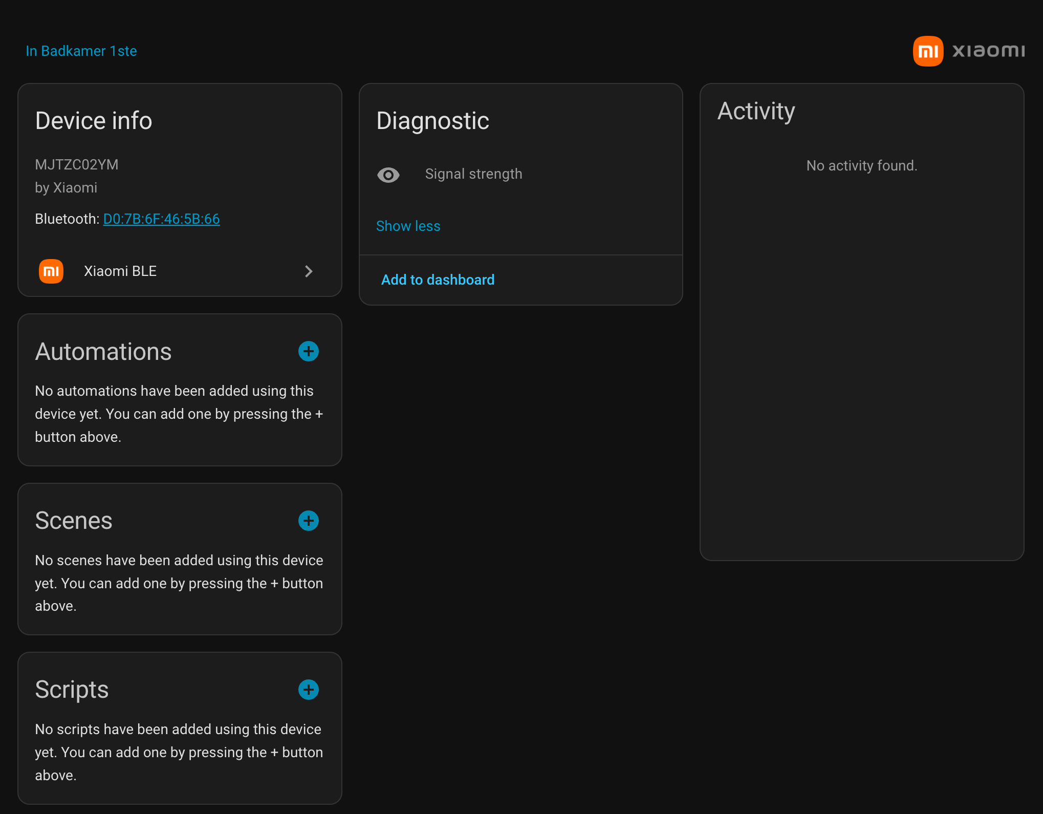 I’ve purchased a Xiaomi S200 person scale, when inserting the batteries immediately the device was detected by Home Assistant. But when installing the device, it doesn’t show any fields. How can I get the information from the scale into HA?