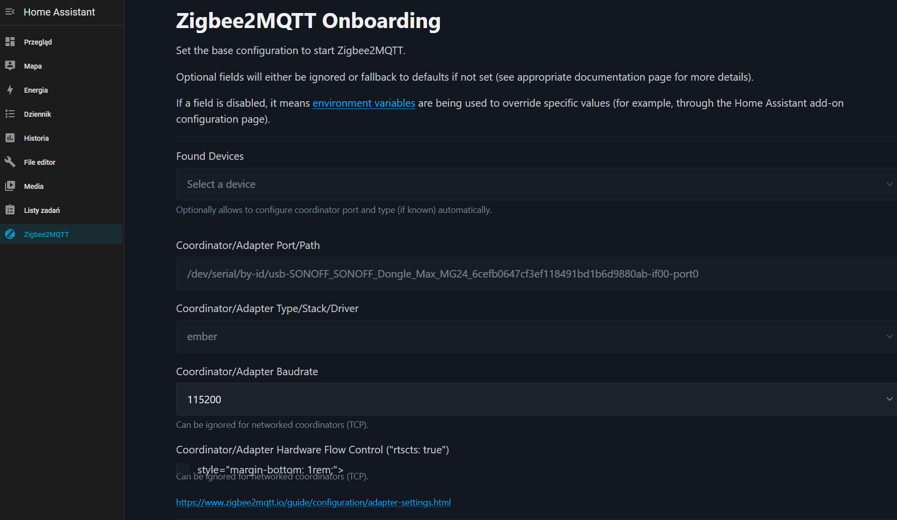 I know that there have been similar threads, but unfortunately I haven’t found a solution to my problem. I have a SONOFF MAX dongle. I’ve tried various configurations, but for some reason the panel won’t show up.