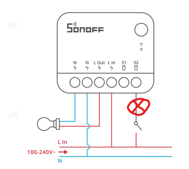 I wonder if it is allowed, and if it would work if I connect my ZBMINIR2 like shown on this drawing. The X is a lamp with is in series with the switch.