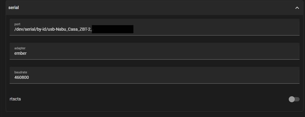 port: /dev/serial/by-id/usb-Nabu_Casa_ZBT-<removed>-if00