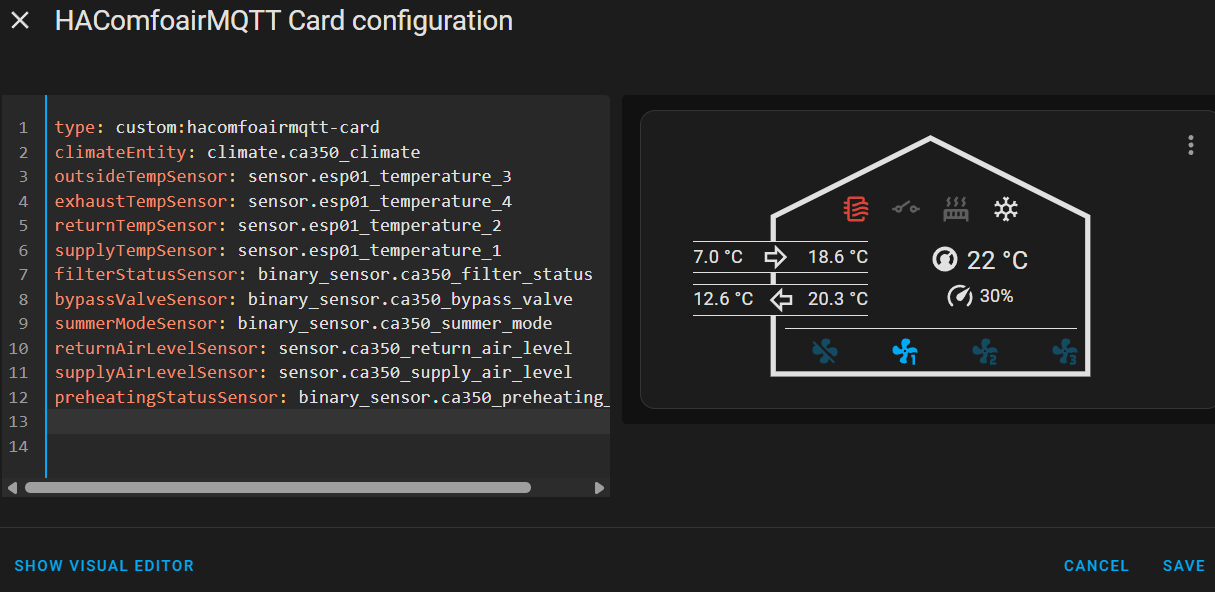 Btw, for CA350 off is not really off, it is more an “away” mode as the vent is not really turned off, rather is put on the lowest speed. You can’t have such setup for climate entity in HA.