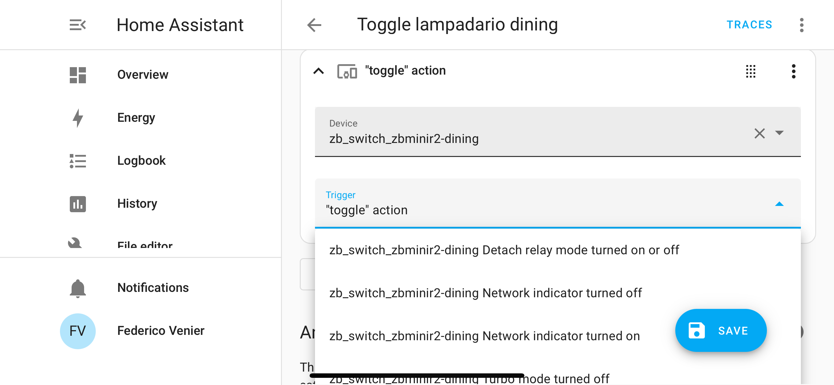 I want one set of behaviours when the rocker switch is Off and another when it is On, I expected the rocker state to be presented as a sensor, but instead all I can do is trigger a toggle and not actually report switch state. I could work around this by storing a variable in HA that holds the current state of the rocker switch and turn it on or off accordingly on a toggle event (not fool proof, it could well go out of sync) but I’m struggling even to do that.