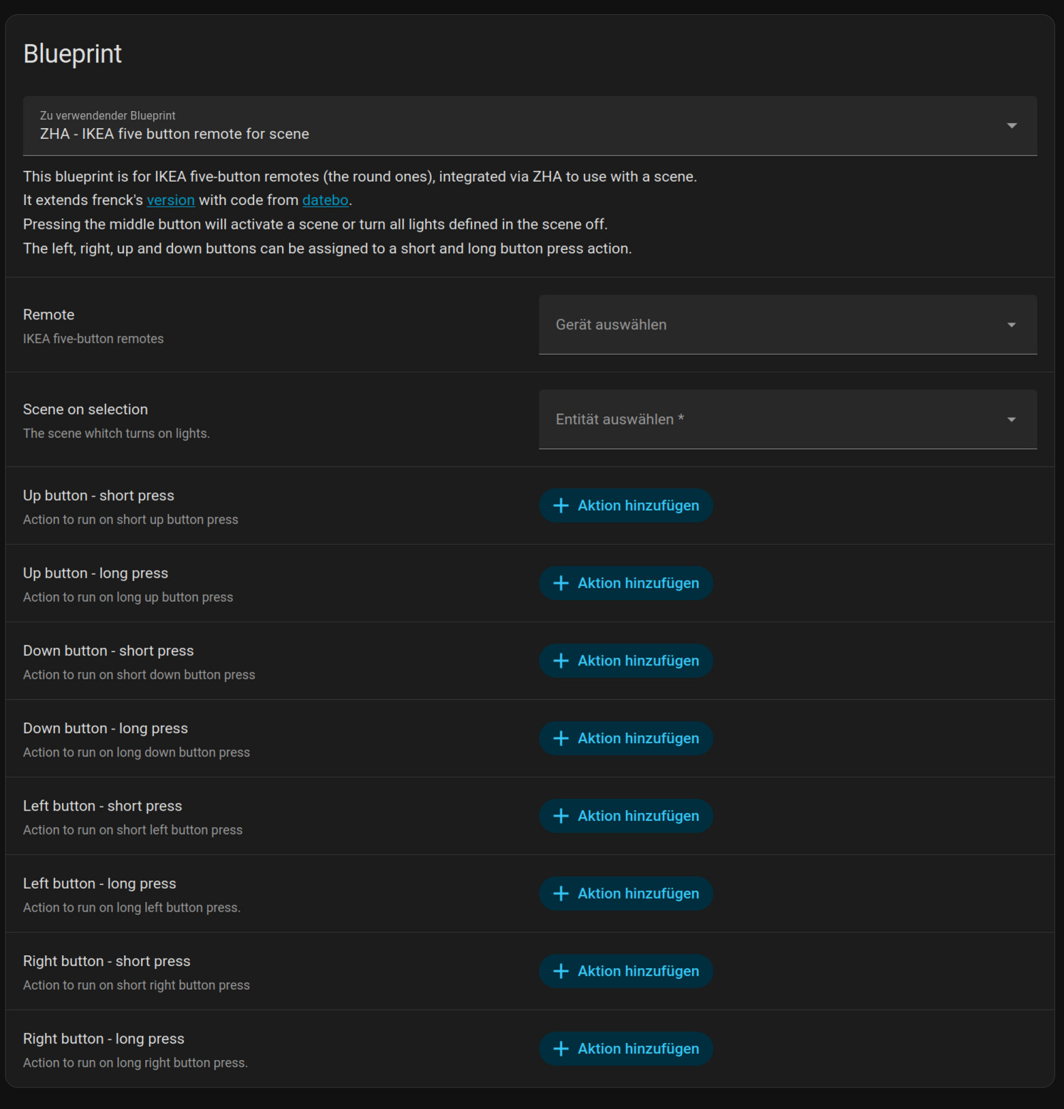 This blueprint is for IKEA five-button remotes (the round ones), integrated via ZHA to use with a scene.
