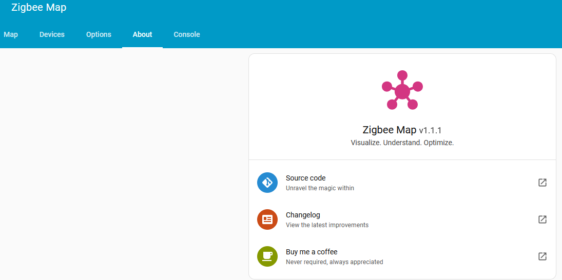 With the Zigbee Map open in another tab, open the new Z2M UI (windfront) and go to: Settings → Dev console → External Extensions. Make sure zigbee-map-extension.js shows up in the dropdown.
