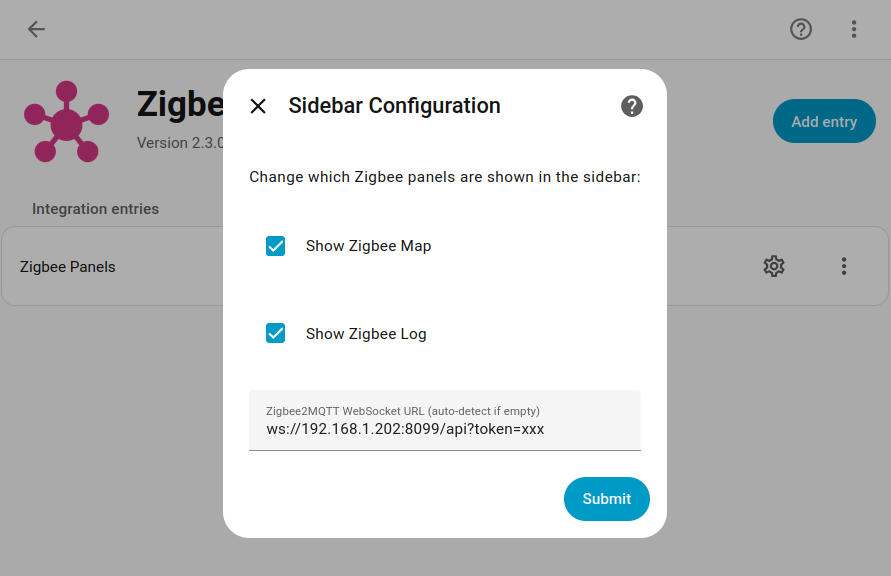 After the manual installation and configuration added in the configuration.yaml file I receive this fail, I run z2mqtt in a seperate lxc in Proxmox but I can access the frondend by adding z2mqtt proxy addon in HA and point it to the IP address with port 8099 of the z2mqtt instance without tokens.