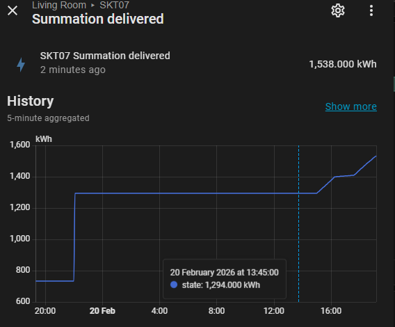 2- Aggregate power consumption by the device over time. My graphs of this entity look similar to yours. It continues up over time, like yours