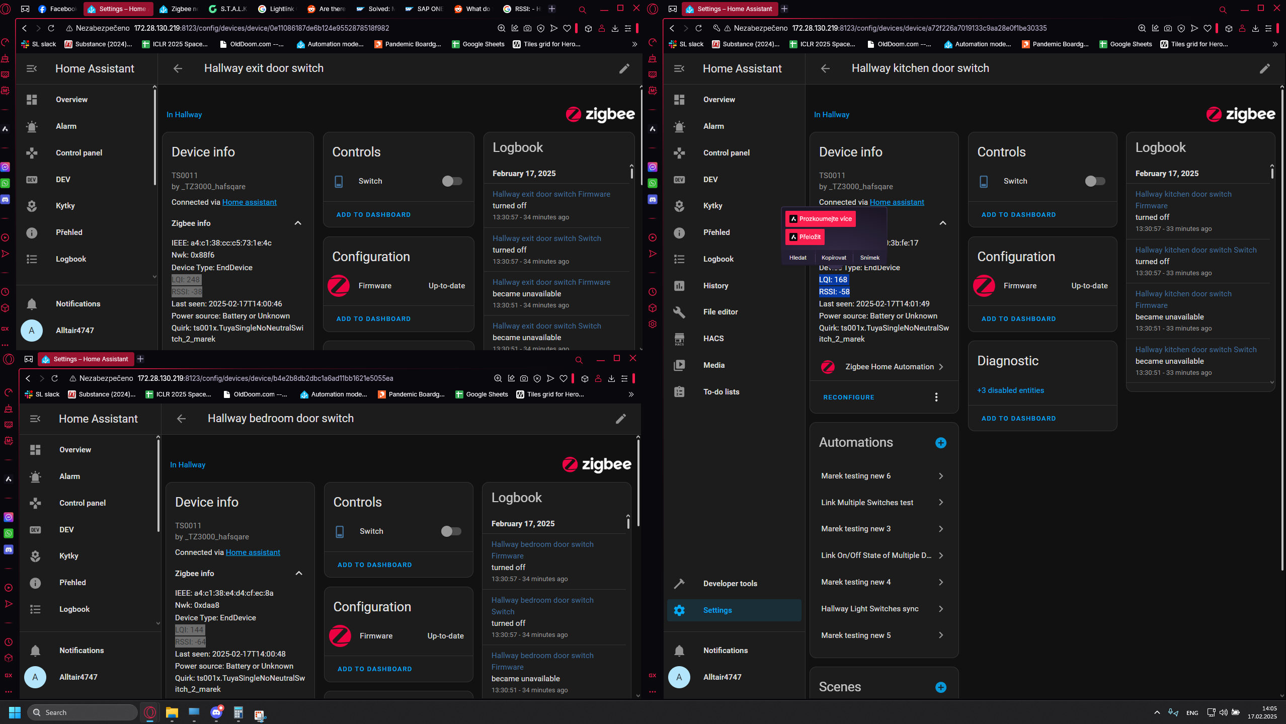 To be honest, I have already tried several automations to make them work like they used to, but nothing works 100 percent. Currently, I am testing only two switches in my bedroom. Basically, if I do not use them for some time, they usually work okay. But once I toggle them several times in a short period, the other switch is not toggled. Also, it is strange to me that when I do it via a group in the HA environment, it works fine. Does anyone have a similar experience? As already mentioned, I have tried several different automation approaches, but with no luck. I have also tried to slightly modify the quirk I am using to see if anything changes—still nothing.