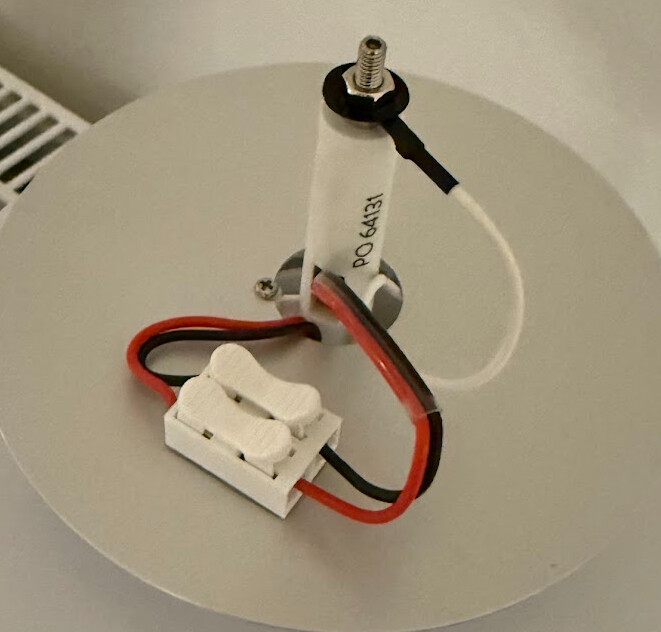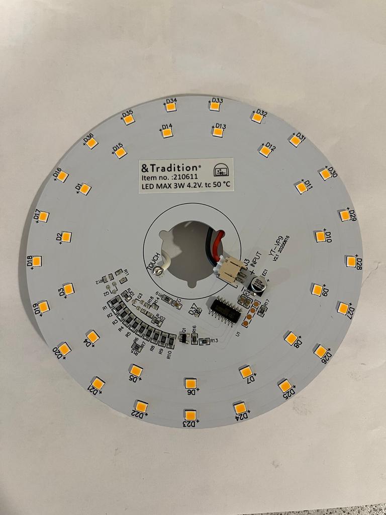 Lamp is a Flowerpot VP9. Found the leds circuit, and as you can see it has the «touch» input. It has wire soldered to it which is connected to the top part of the lamp which is exposed to touch.
